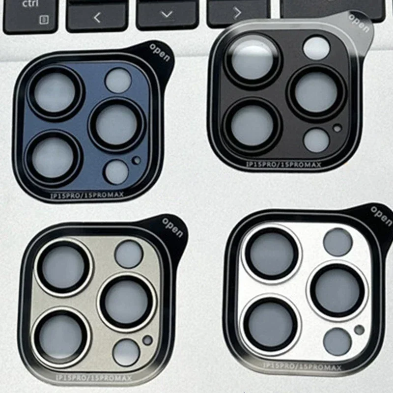 Protector de lente de cámara para IPhone 15 16 17Pro Max Plus, funda de cristal con anillo de lente de Metal para IPhone 12 13 14 Pro Max, tapa protectora de lente