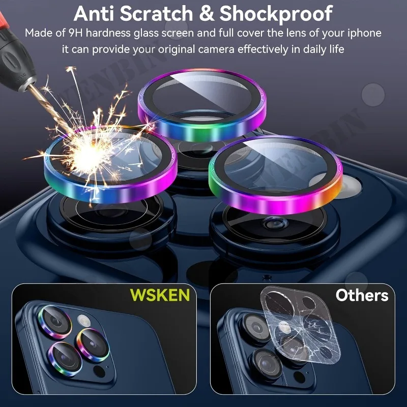 Protector de lente de cámara para iPhone, vidrio Protector de Metal de diamante para iPhone 15 Pro 14 13 12 11 Pro Max Plus Mini, 2 piezas