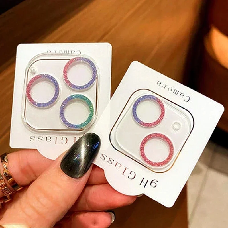 Protector de lente de cámara ostentoso con purpurina para iPhone 13 11 14 15 Pro Max 12 Mini Plus 15Pro 14Pro IPhone15 cubierta completa de vidrio templado