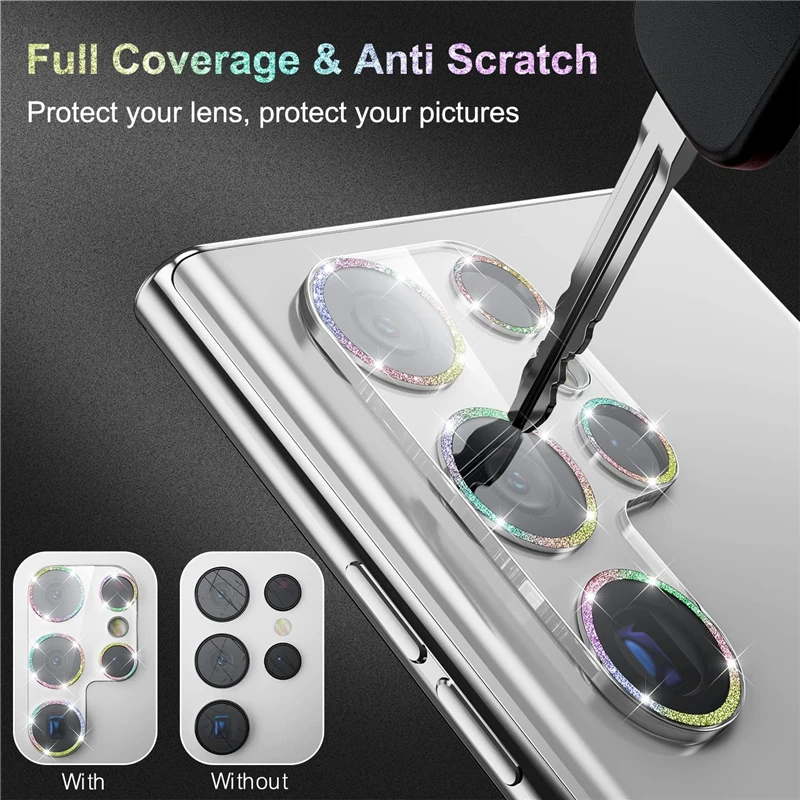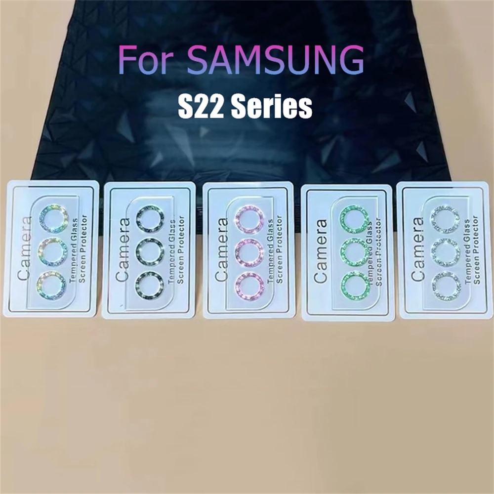 Comprar Protector de lente de cámara con purpurina ostentosa y diamante para Samsung Galaxy S22 Ultra S23 Plus S23Ultra S23Plus, cubierta completa de vidrio templado