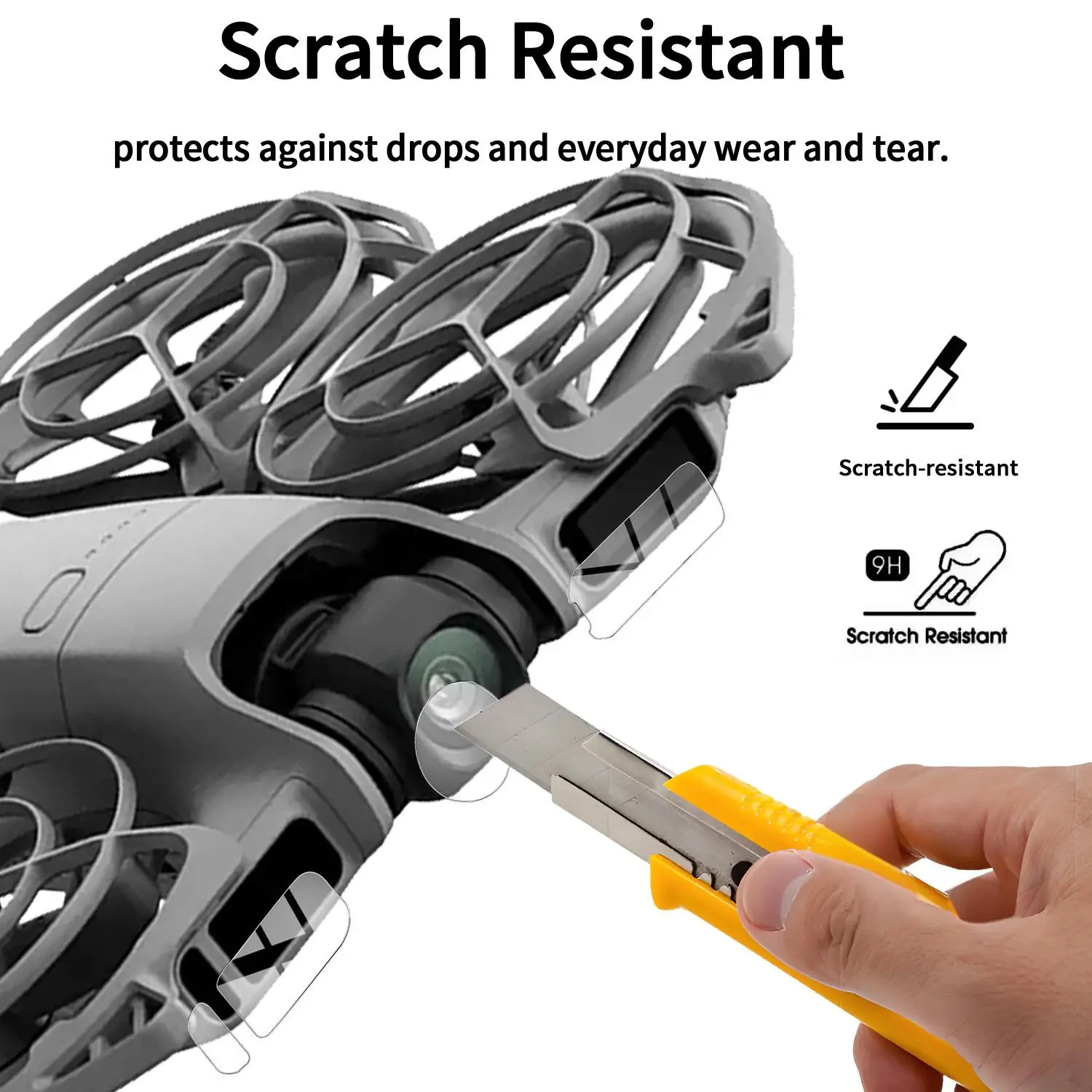 【Diseño personalizado】: diseñado específicamente para la cámara del dron DJI Neo2.Se corta con precisión según los datos originales de la lente de fábrica, coincidiendo perfectamente con el tamaño y la apertura de la lente, logrando una protección de cobertura total del área de la lente sin bloquear la vista de la lente ni afectar las funciones principales como enfoque y zoom.