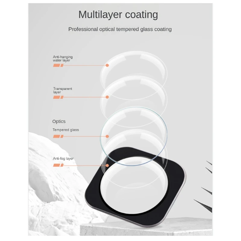 Lente: vidrio templado de imagen óptica (diez veces más duro que el espejo PROTECTOR DE PLÁSTICO PC, la dureza del plástico es de 1h, la dureza del vidrio templado puede alcanzar las 9h). La dureza de la superficie del material generalmente se recubre con un recubrimiento antirreflectante para que la transmitancia de la lente alcance 99. % Superior. Luego recubierto con una capa de película impermeable, el ángulo de goteo alcanza los 115 grados, asegurando que las gotas de agua no permanezcan en la superficie de la lente y afecten el efecto de disparo.