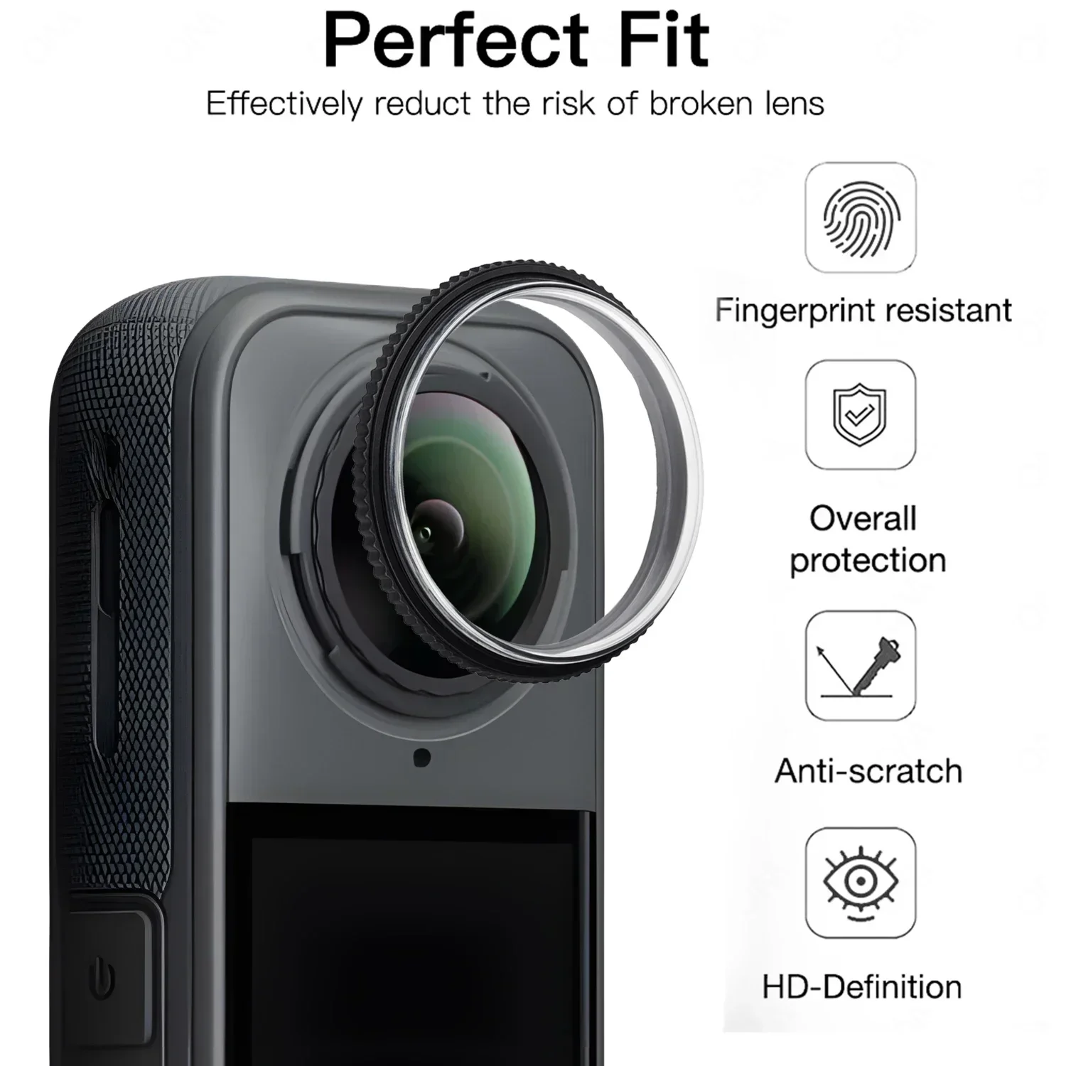 Película de lente 【Diseño giratorio y desmontable】 Gire suavemente la base protectora de la lente para quitarla, lo que la hace conveniente para el autoreemplazo.【Material de alta resistencia】: nuestro protector de lente Insta360 X5/X4 está hecho de material de alta resistencia, lo que brinda una fuerte protección para las lentes de su cámara.Su diseño es para evitar rayones y otros daños potenciales sin afectar la función de la lente.【Ajuste preciso】: Nuestra película protectora de lentes está hecha a medida de acuerdo con las especificaciones precisas de Insta360 X5/X4, proporcionando un ajuste 1:1 real que se alinea con la lente de la cámara para lograr una combinación perfecta.【Diseño de borde antideslumbrante】: el borde de la película de la lente está tratado con negro mate, lo que ayuda a reducir el deslumbramiento y la luz parásita.【Componentes protectores】: Tiene múltiples funciones como resistencia al rayado, resistencia al agua, resistencia al polvo y resistencia a la deformación.También tiene resistencia a altas temperaturas, lo que garantiza que la lente de su cámara esté protegida de diversos factores ambientales.Especificación:Material: PCAplicable a: Para Insta360 X5/X4Tamaño: 3,7 cm de diámetro