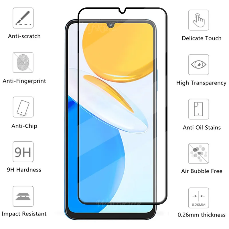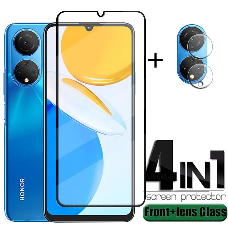 Comprar Protector de pantalla 4 en 1 para Huawei Honor X7, vidrio templado 9H, cubierta de película de pegamento completo, cristal de lente para Honor X 7 X7