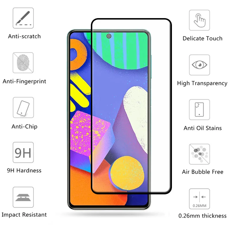 Comprar Protector de pantalla 4 en 1 para Samsung Galaxy M62, película de vidrio templado HD, pegamento completo, cristal de lente