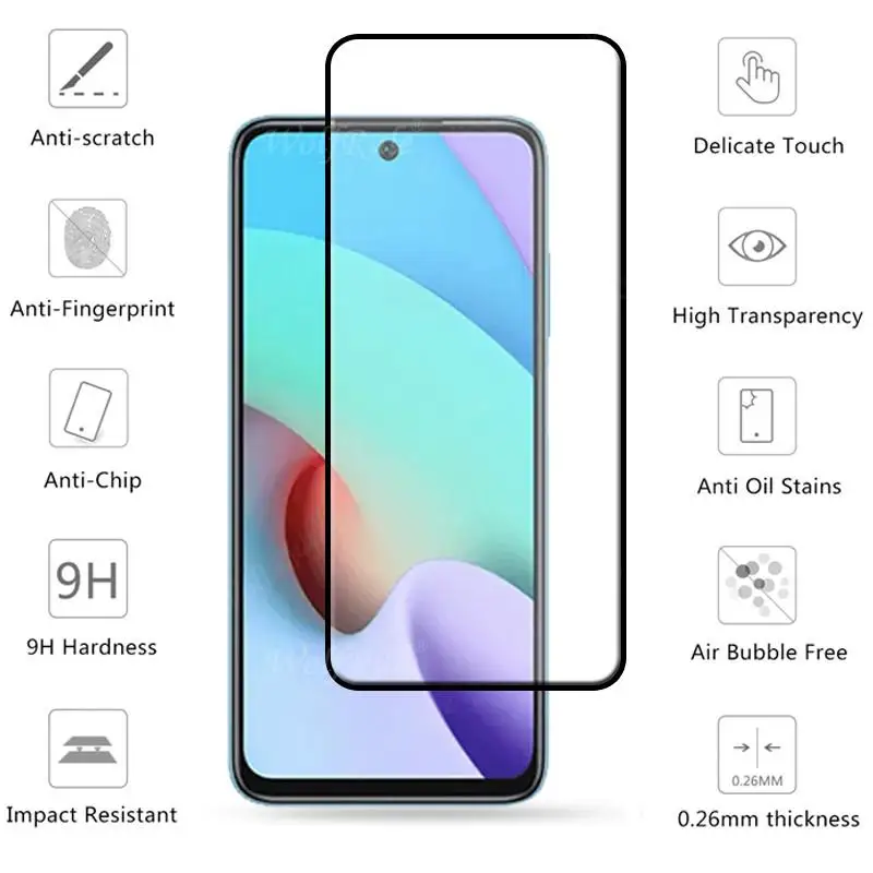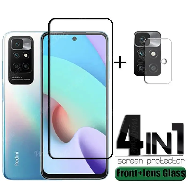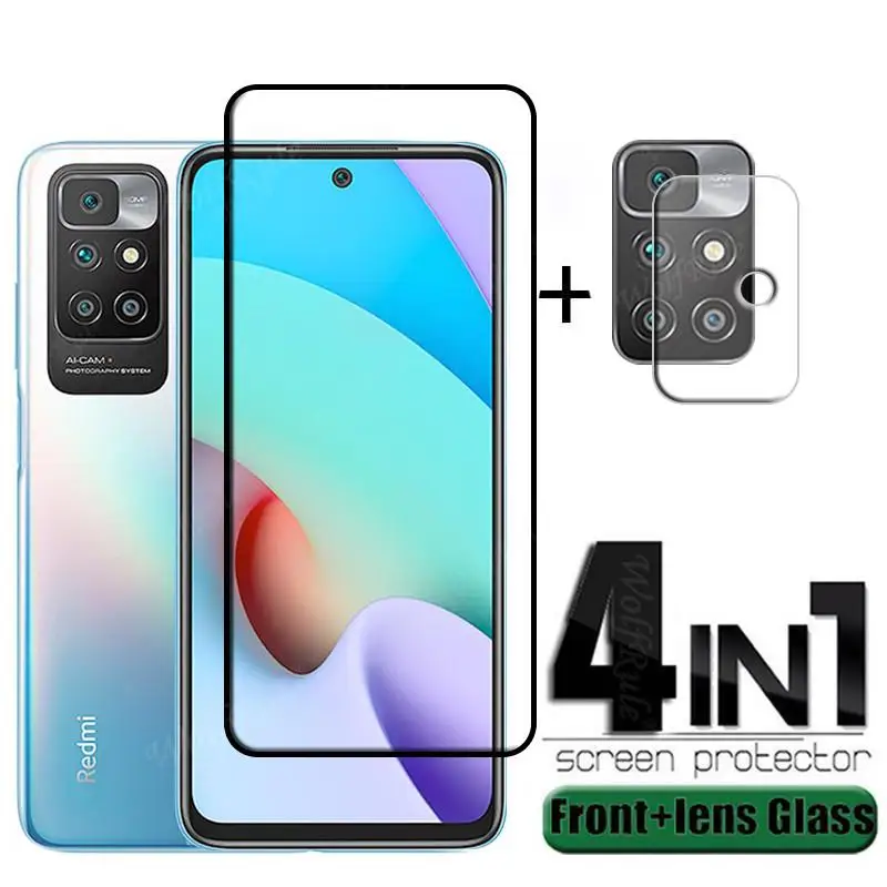Comprar Protector de pantalla 4 en 1 para Xiaomi Redmi 10, cubierta completa de vidrio templado, película de pegamento HD 9H