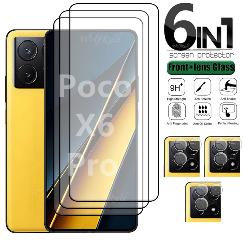 Comprar Protector de pantalla 6 en 1 para Poco X6 Pro, cristal templado con pegamento completo 9H HD, para Xiaomi Poco X6 X 6 Pro