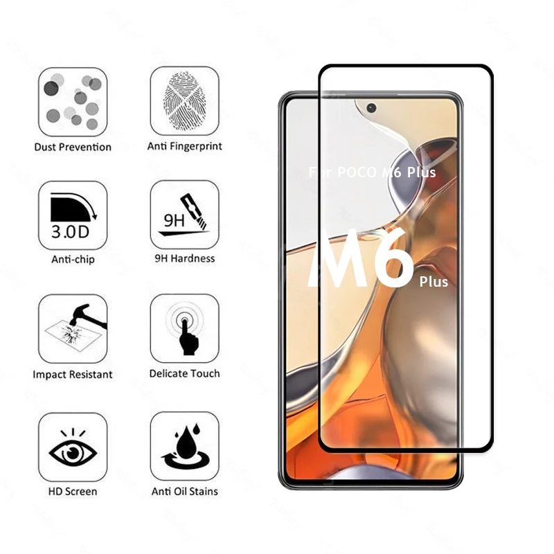 Comprar Protector de pantalla 6 en 1 para Xiaomi POCO M6 Plus, cristal templado para POCO M6 Plus, Protector de pantalla, película para cámara, POCO M6 Plus