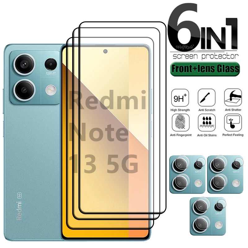 Comprar Protector de pantalla 6 en 1 para Xiaomi Redmi Note 13 5G, cristal templado 9H, Protector de lente