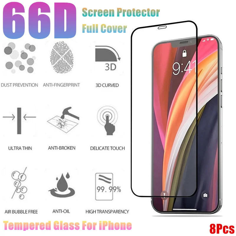 Comprar Protector de pantalla 66D para iPhone, cubierta completa de vidrio templado para iPhone 13, 12, 11 Pro Max, Mini, 7, 8 Plus, X, XR, XS MAX, SE 2020