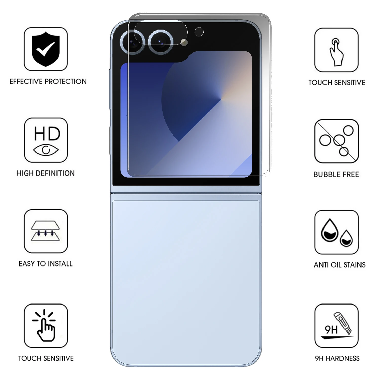 Película de lenteNombre del producto: Película de lente circular negra pequeña serigrafada para Samsung Galaxy Z Flip 7Color: TransparenteModelo aplicable: Para Samsung Galaxy Z Flip 7Tamaño: 2,93*1.52 cmMaterial: vidrio templado Protector de pantallaMaterial: TPUTamaño: la película de la pantalla interior mide 6,8*15,8 cm y la película de la carcasa exterior mide 7,2*7,8 cmModelos aplicables: Para Samsung Galaxy Z Flip 7Características de la película: HD, anti-peepColor: Transparente