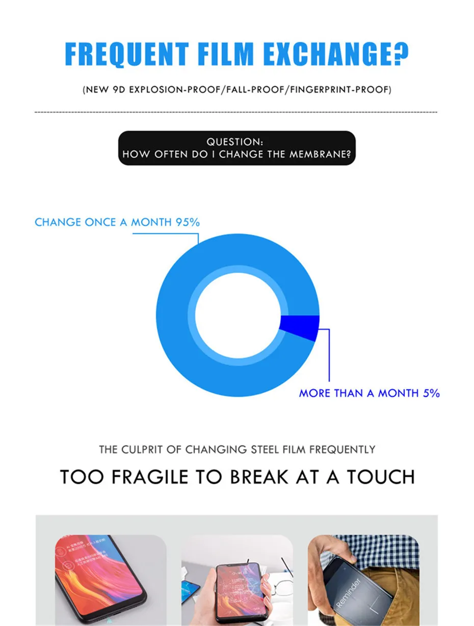 5. Transmitancia HD óptica: Grosor ultrafino, relación de penetración de luz 93.7% (comparación: gafas 92%, película protectora general 80%).
