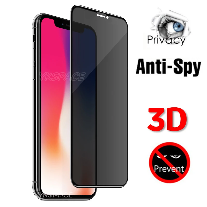 Protector de pantalla antiespía de cubierta completa 3D para iPhone X XR XS 11 12 13 Mini 14 15 16 Pro Max 8 Plus SE 2020 vidrio templado de privacidad