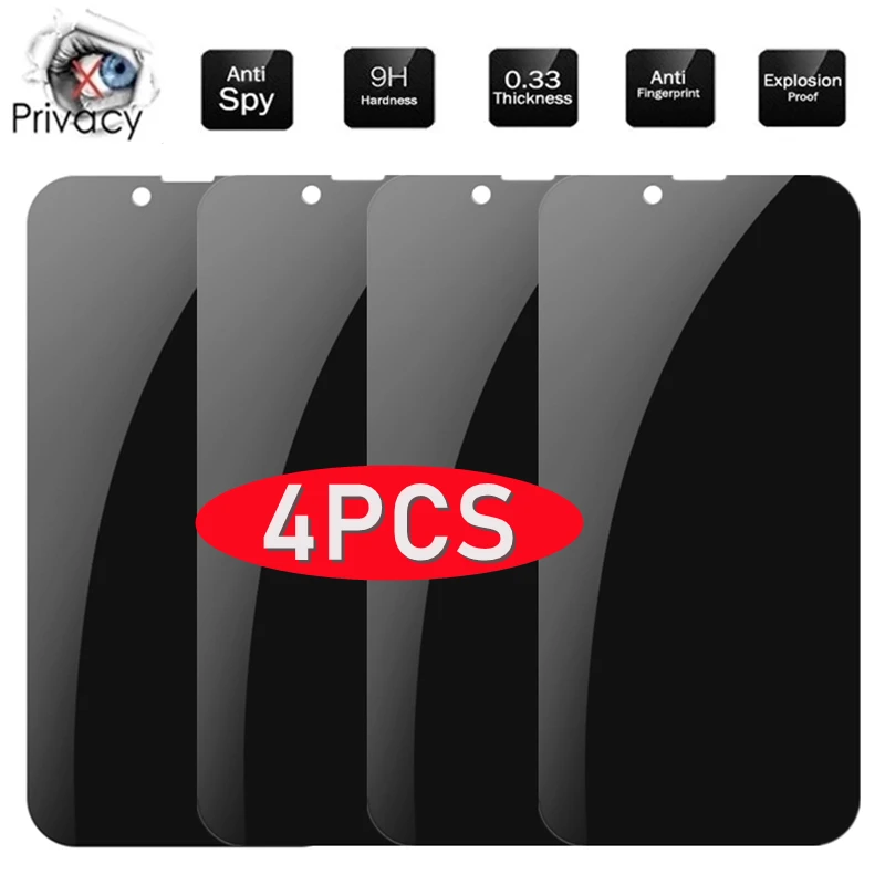 Protector de pantalla antiespía para iPhone, cristal templado de privacidad para iPhone 14 11 12 13 Pro Max 7 8 14Plus, 11 12Mini X XR XS MAX, 4 unidades