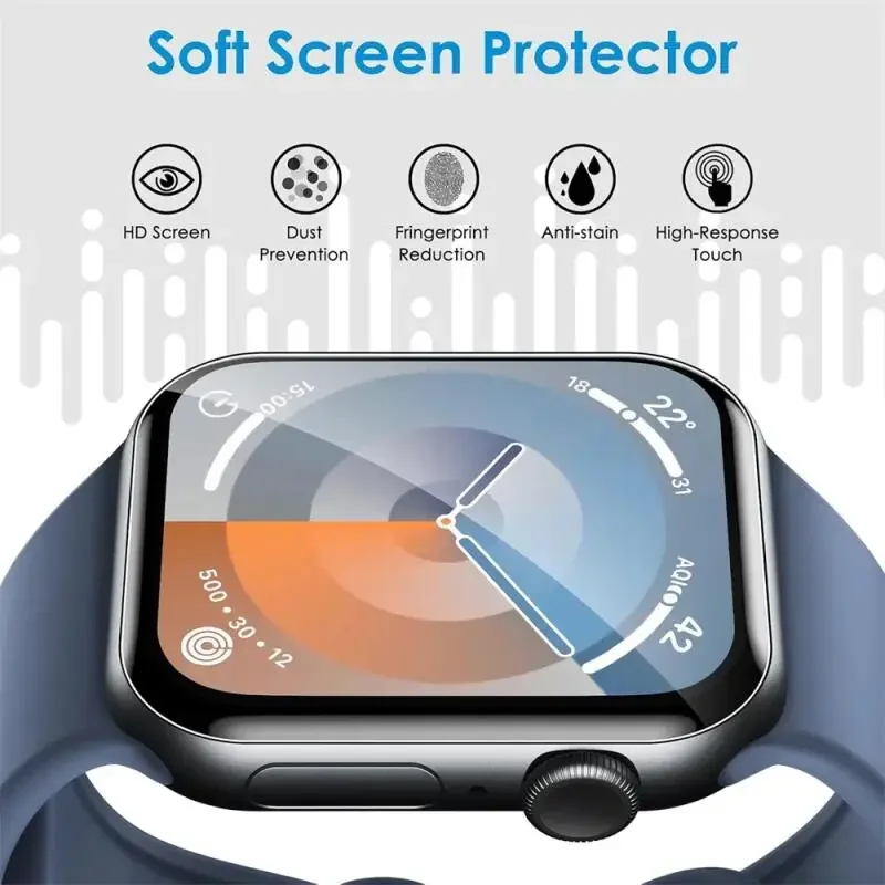 Características: Alta definición Material: TPUModelos compatibles: Para Apple Watch 42/46 mm (serie 10) Para Apple Watch 49 mm (Ultra 2 1) Para Apple Watch 45 mm (Serie 7 8 9) Para Apple Watch 41mm (Serie 7 8 9) Para Apple Watch 44 mm (Serie 6/5/4/SE) Alta sensibilidad de pantalla, sensación táctil cómoda. A prueba de golpes para máxima protección del reloj.Antiarañazos y resistente a rayones. La película protectora de pantalla con revestimiento repelente al aceite protege eficazmente el reloj inteligente del agua, las manchas de aceite o las gotas de lluvia.Una pantalla a prueba de huellas dactilares de alta calidad con alta transparencia, que mantiene el color y el brillo originales. Paquete: solo la película, no la otra