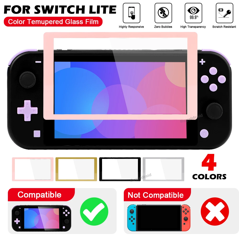 Protector de pantalla colorido para consolas de juegos Nintendo Switch Lite Protector de vidrio templado transparente HD de primera calidad antiarañazosCaracterísticas:Protector de pantalla antiarañazos de vidrio templado para Switch Lite1 Capacidad antiarañazos y autoadhesiva de alta calidad2. Las películas superior e inferior pueden proteger su dispositivo contra el polvo y los rayones.3.Fácil de instalar, ofrece una superficie resistente, duradera y transparente mientras mantiene fascinante la superficie brillante.4. Alta calidad, proporciona una experiencia más cómoda que la pantalla original, los ojos no se fatigan fácilmente incluso durante mucho tiempo.Guía de instalaciónPaso 1:Limpia la pantalla con toallitas húmedas.