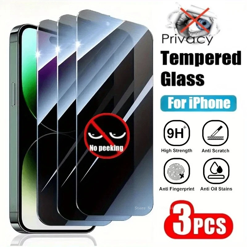 Comprar Protector de pantalla completa de privacidad de 3 piezas para iPhone 17 16 15 Pro Max 16e 15 14 Plus vidrio templado para iPhone 14 13 12 Pro X XR XS Max