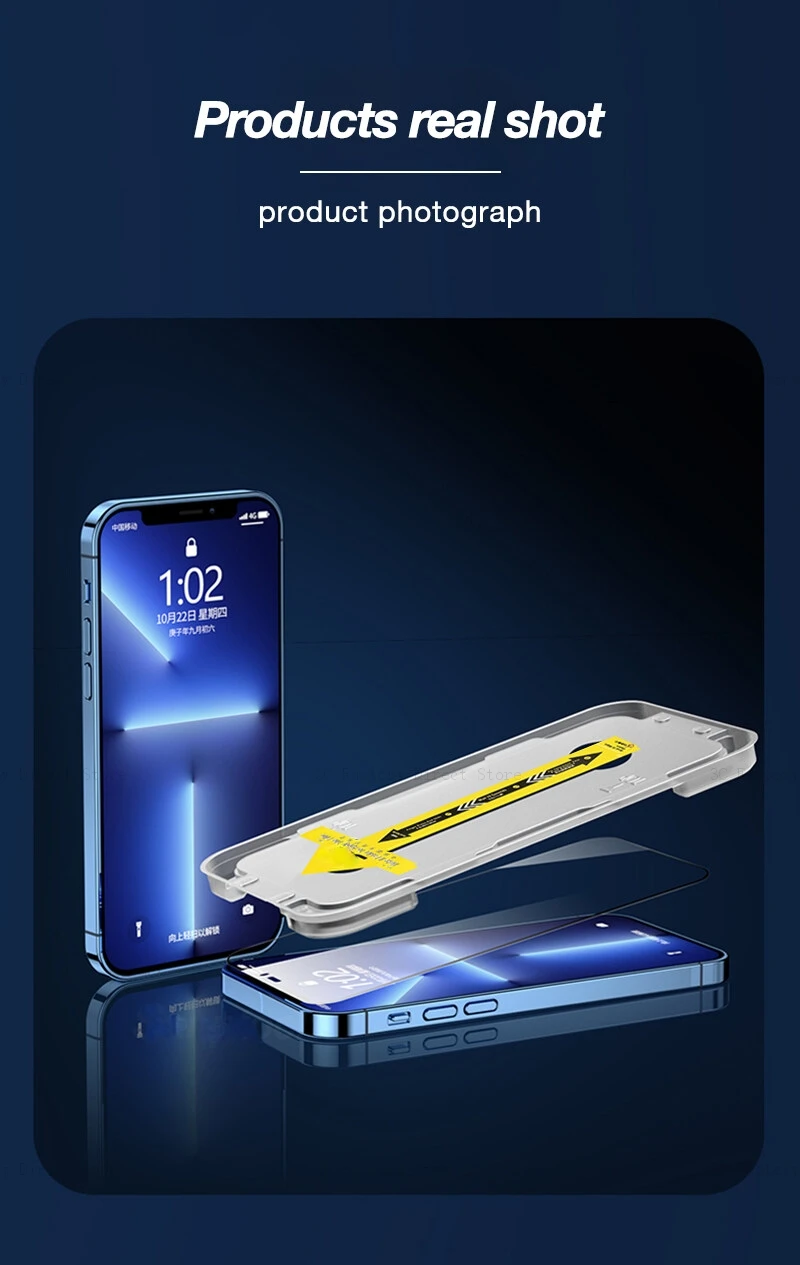 Protector de pantalla completa de 2 uds con Kit de fácil instalación para iPhone 14 13 12 11 Pro Max Plus vidrio templado para iPhone X Xs Max XR