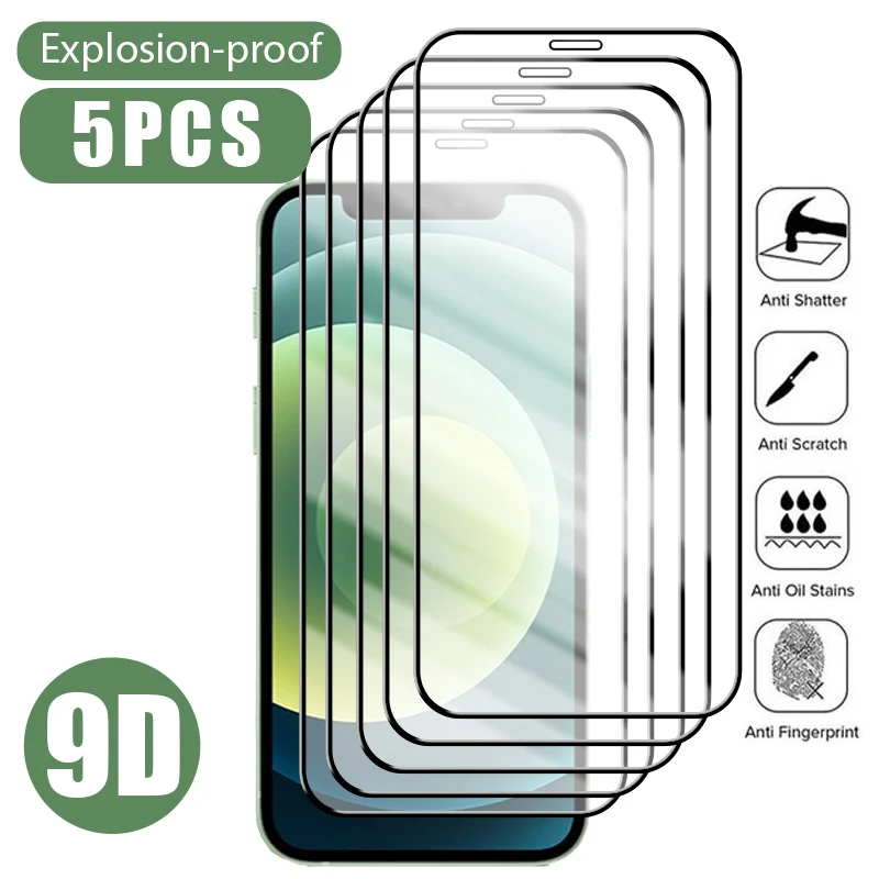 Comprar Protector de pantalla de cristal completo para iPhone, Protector de pantalla para iPhone 11 12 13 14 Pro Max SE 2020, 13 12 Mini X XS Max XR 6 6S 7 8 14 Plus, 5 uds.