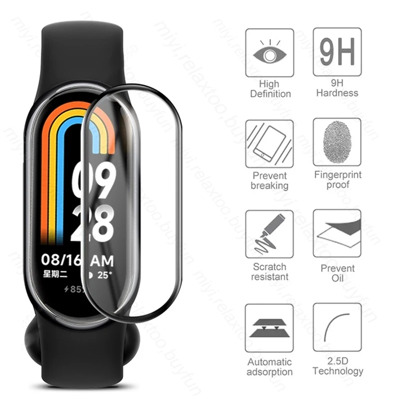 Comprar Protector de pantalla de Cristal Curvo para Xiaomi, película protectora suave 9D para Mi Band 8, Band8, Miband 8, NFC, NFS, 1 a 3 unidades