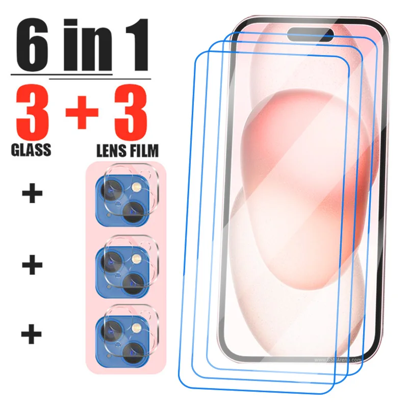 Comprar Protector de pantalla de cristal templado 6 en 1 para móvil, lente de cámara para iPhone 15, 14, 13, 12, 11 Pro Max, 15, 14, 13, 12, 11 Mini Plus