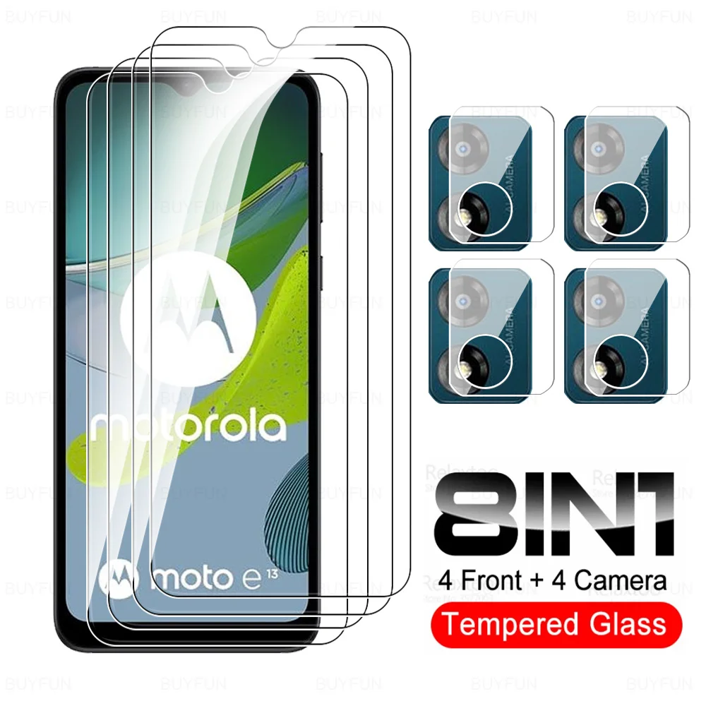 8 En 1 para Motorola Moto E13 4G Cámara protectora de vidrio templado Moto Rola MotoE13 E 13 13E 2023 6.5in protectores de pantalla película de lente