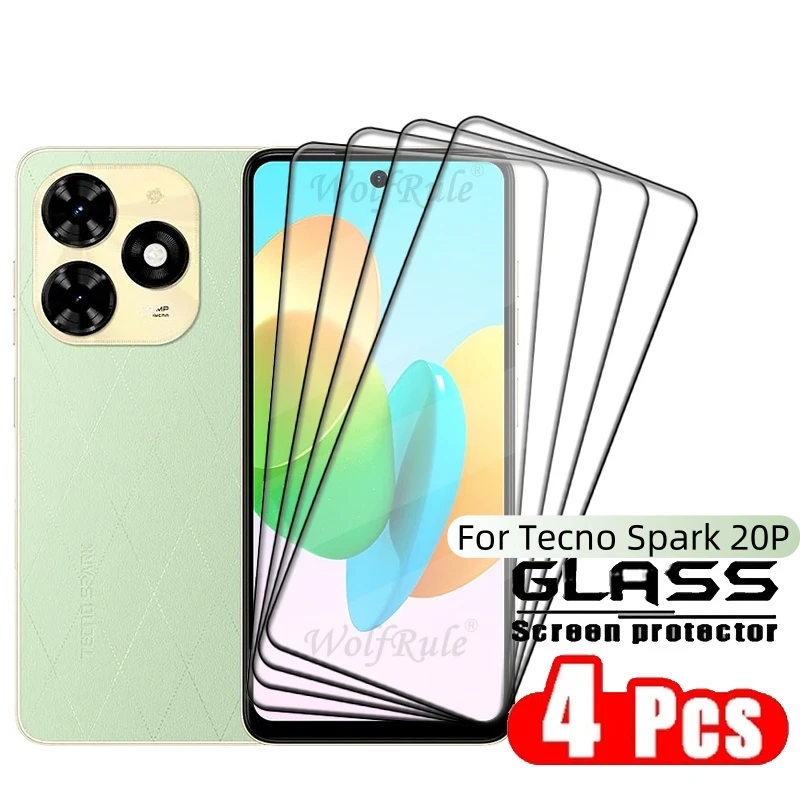 Comprar Protector de pantalla de cristal templado para Tecno Spark 20P, 4 piezas, pegamento de cubierta completa, 9H, HD, Tecno Spark 20P