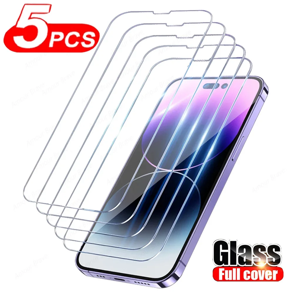 Protector de pantalla de cubierta completa para iPhone, película protectora de vidrio para iPhone 11, 14, 12, 13, 15 Pro Max, X, XR, XS Max, 6s, 7, 8, 14 Plus, 5 unidades