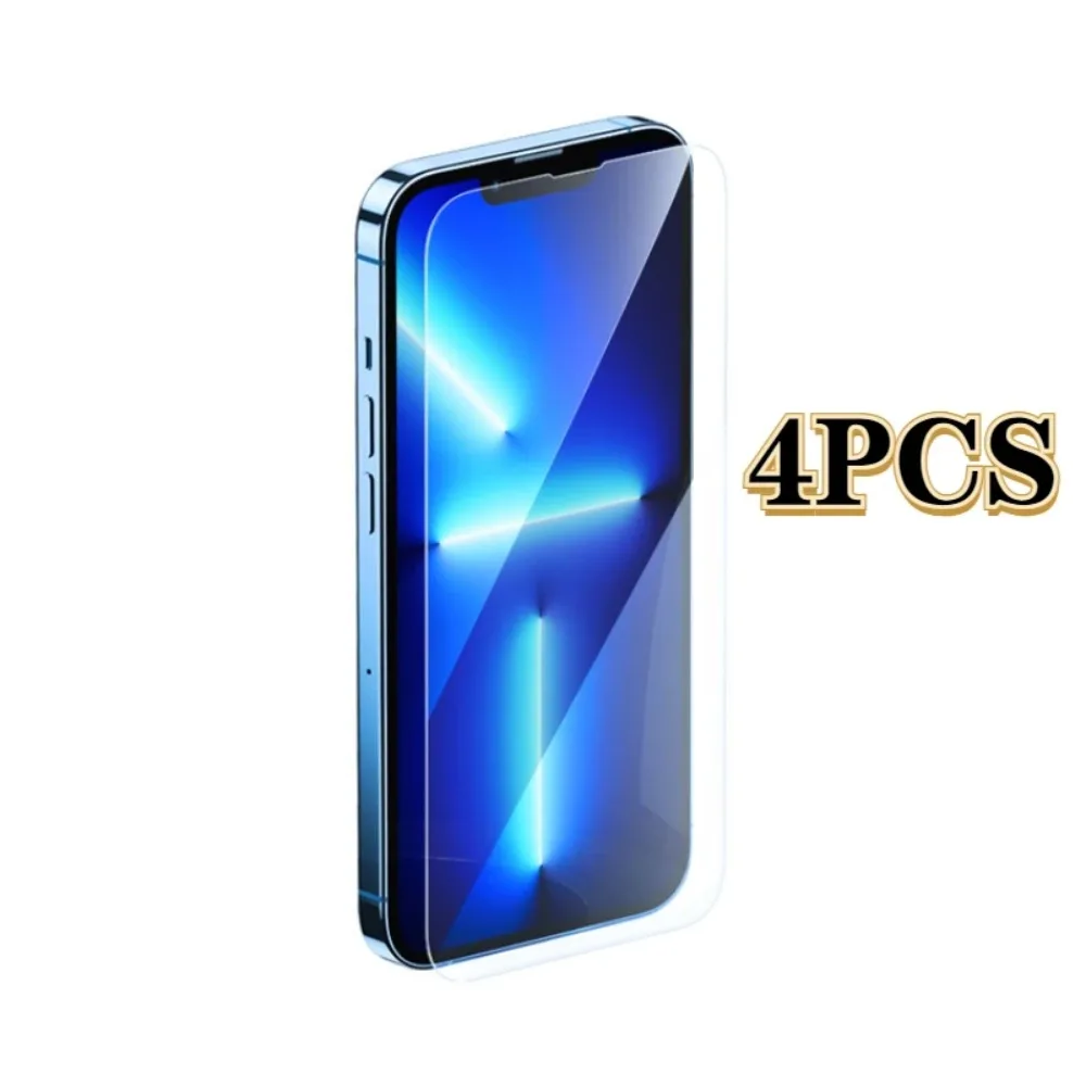 Protector de pantalla de cubierta completa para IPhone, vidrio templado para IPhone 11, 15 Pro Max, 12, 13, 14 Pro Mini, 7, 8Plus, X, XR, XS Max, 4 unidades