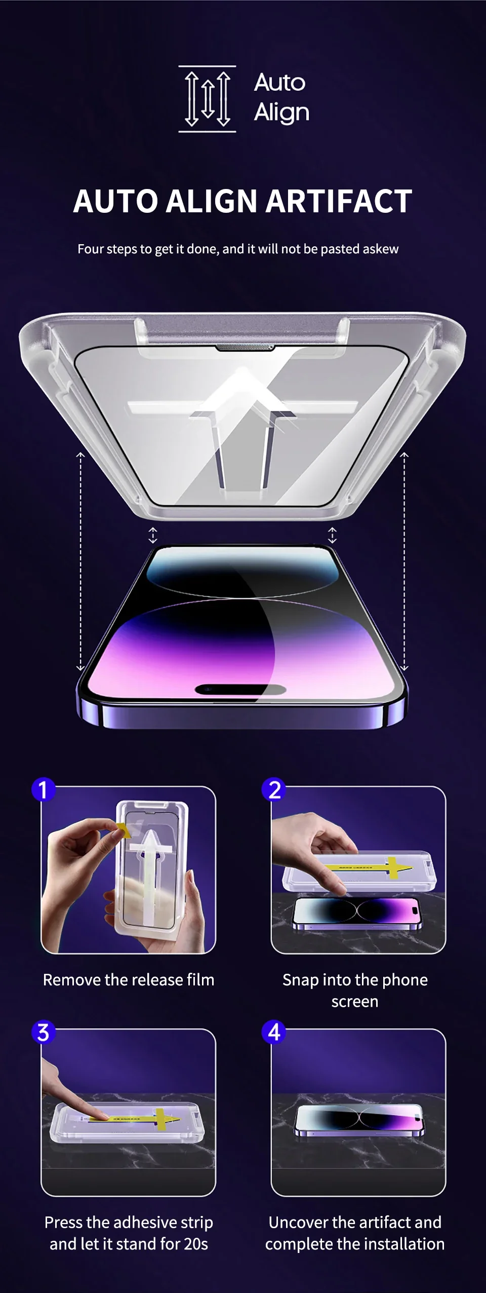 Protector de pantalla con cubierta de montaje de alineación, cristal templado de alta gama 8K para iPhone 15, 14, 13, 12, 11 Pro Max, XS MAX, X, XR, 2 unidades