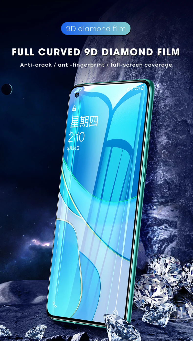Comprar Protector de pantalla de diamantes SmartDevil para OnePlus 8T 9 9R 7, cristal de cubierta completa HD a prueba de explosiones, antihuellas, antiarañazos, 9H