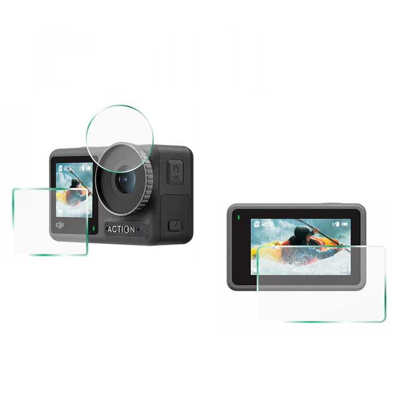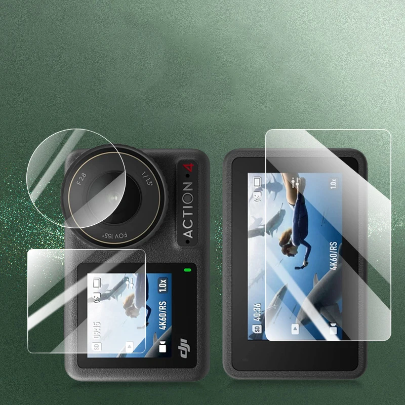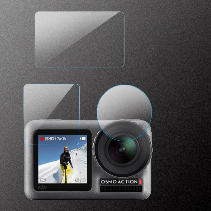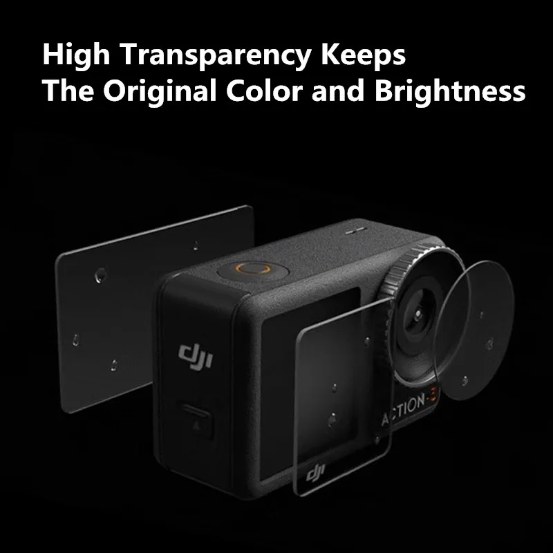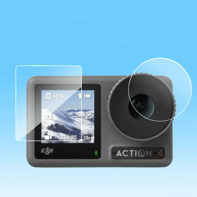 La cubierta de la pantalla frontal no se ajusta a la lente Osmo Action 5 y el protector trasero encaja bien.