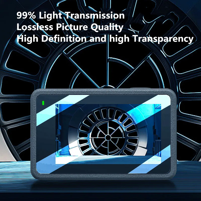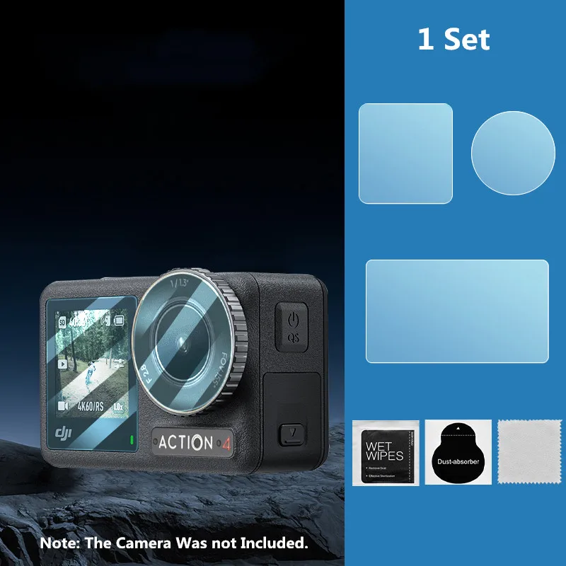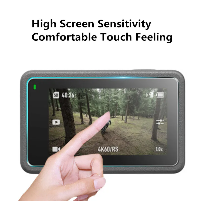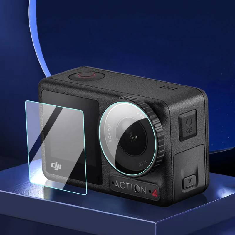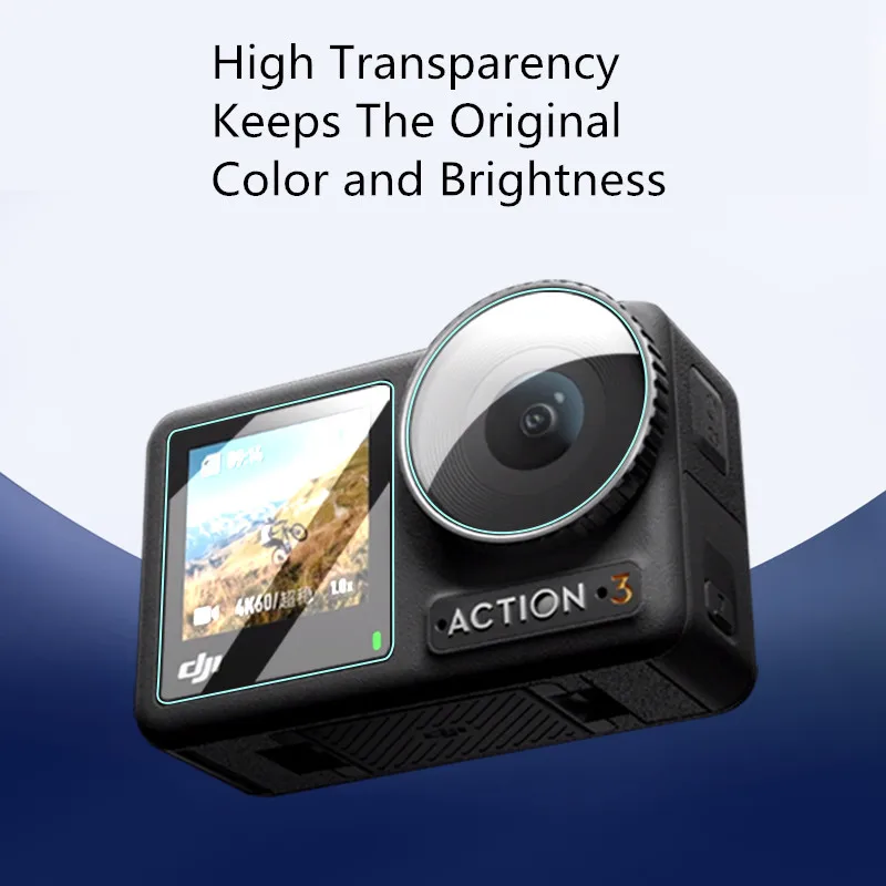 La cubierta de la pantalla frontal no se ajusta a la lente Osmo Action 5 y el protector trasero encaja bien.