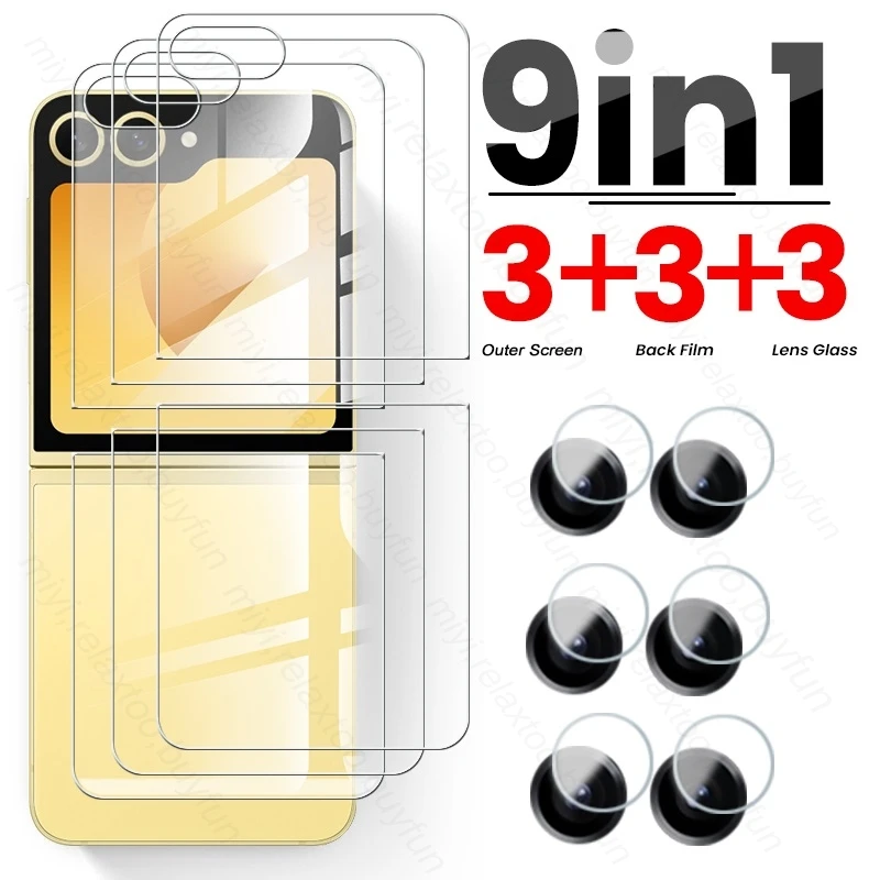 Protector de pantalla exterior de vidrio templado 9 en 1, película trasera para Samsung Galaxy Z Flip6 5G, vidrio protector de cámara para ZFlip6 Flip 6
