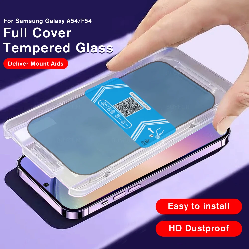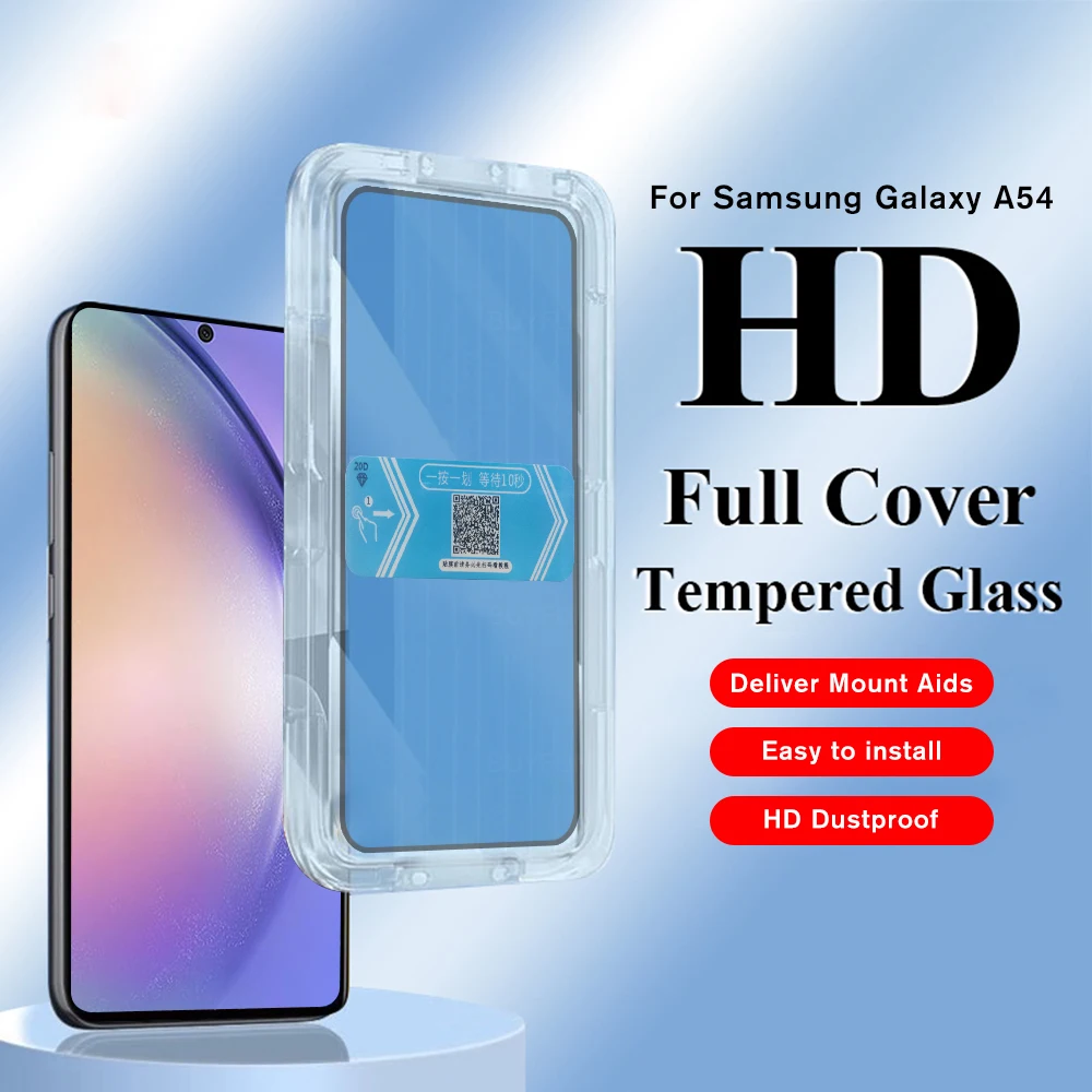 Protector de pantalla de fácil instalación para Samsung Galaxy A54 A34 A24 A14 M14 M13 4G M23 S20 FE 5G, película de vidrio templado, Ayuda de montaje