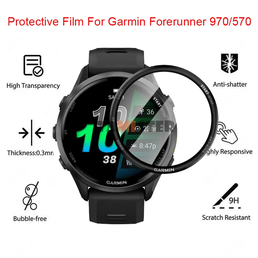 Protector de pantalla suave y Flexible para Garmin Forerunner 970, película protectora antiarañazos de cobertura completa para Garmin Forerunner 570 42mm 47mm, no vidrio