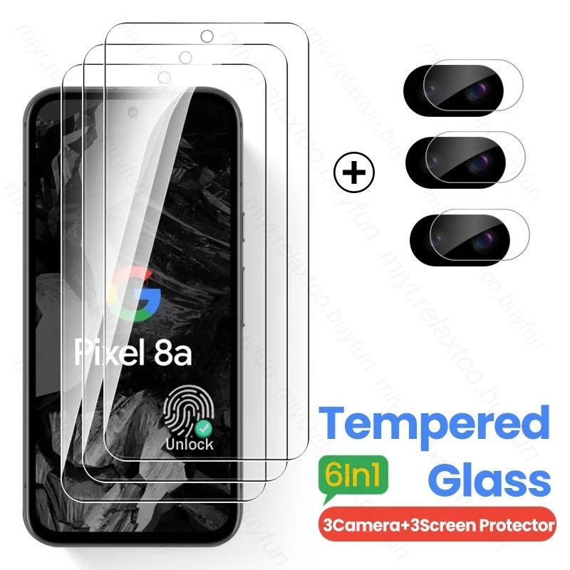 Para Google Pixel 8a 5G Glass 6In1 Protector de pantalla en Googel Pixel8a Vidrio templado Pixle 8Pro 8 Pro 7 6 A 7a 6a 5G Vidrio de cámara