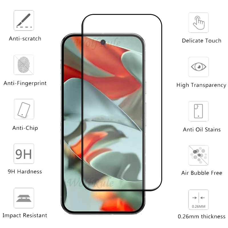 Comprar Protector de pantalla para Google Pixel 9 Pro, cristal templado 6 en 1, 9H, HD