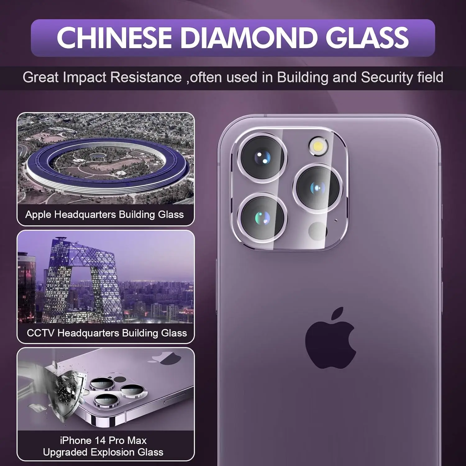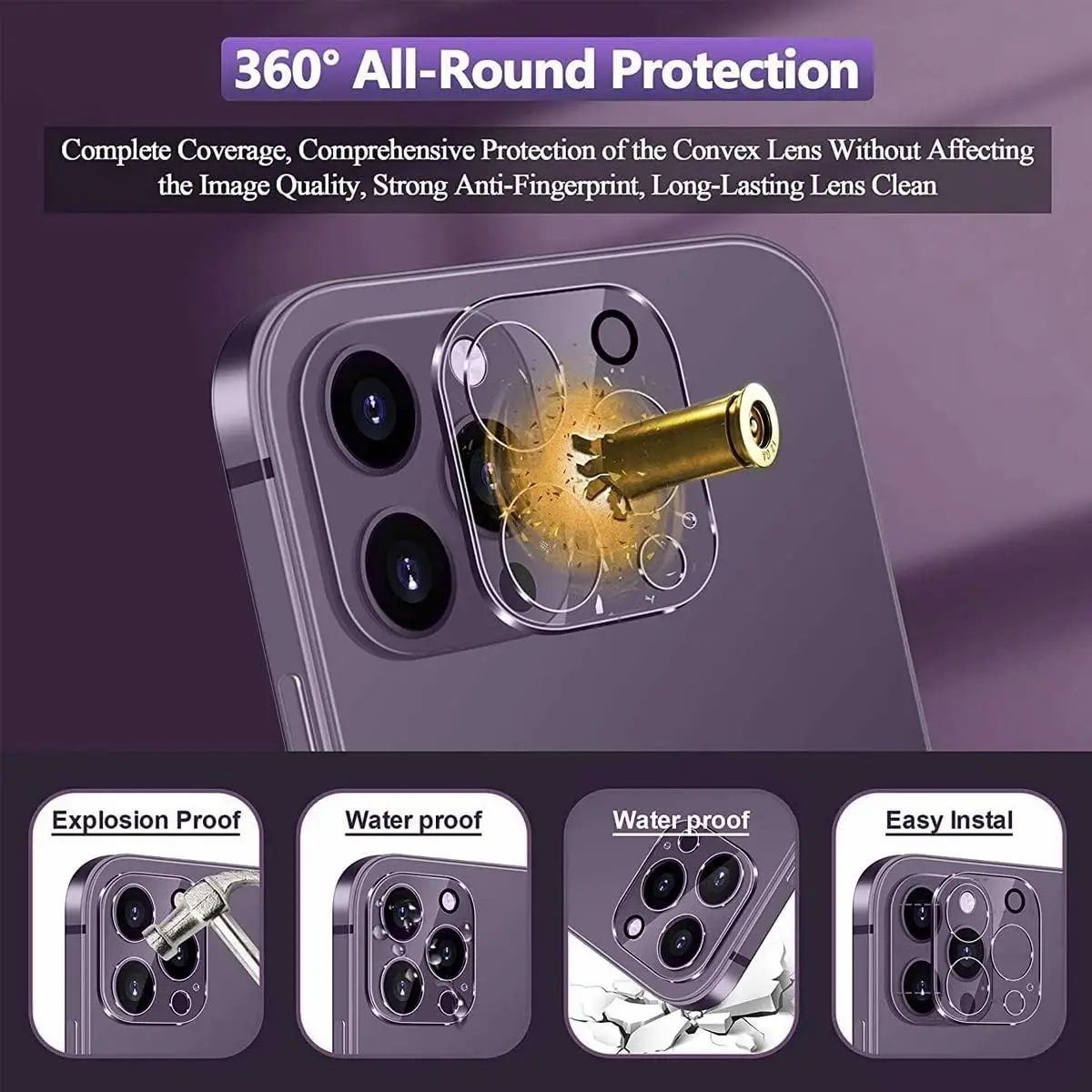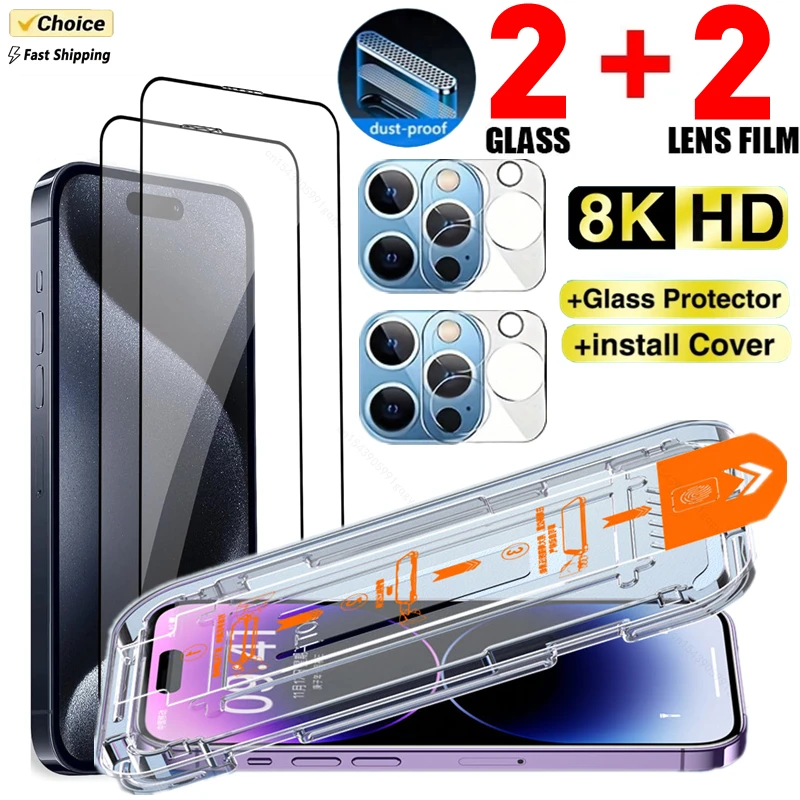 Comprar Protector de pantalla HD para iPhone, cristal Protector de lente de cámara 4 en 1, instalación sin polvo, 1 clic, 15, 14, 13, 12, 11 Pro Max Plus