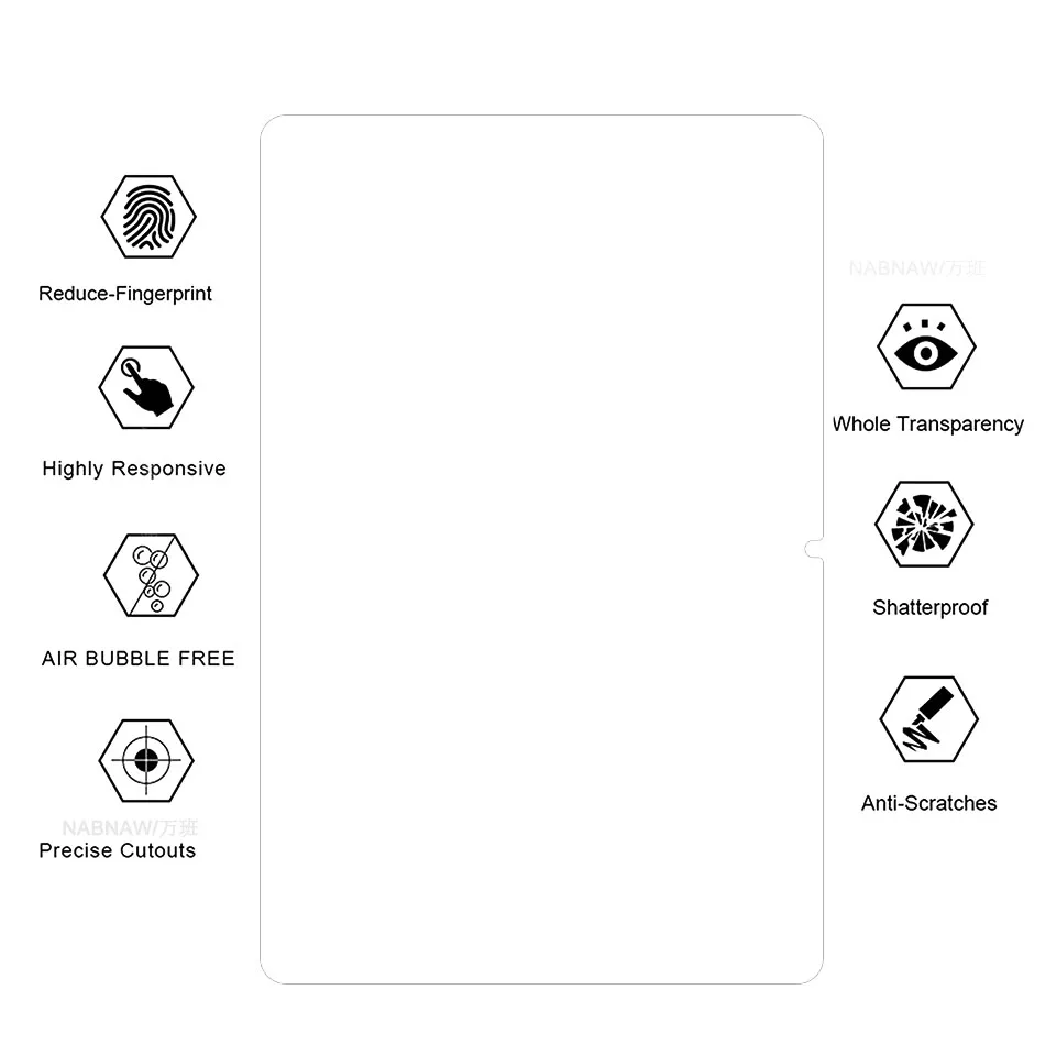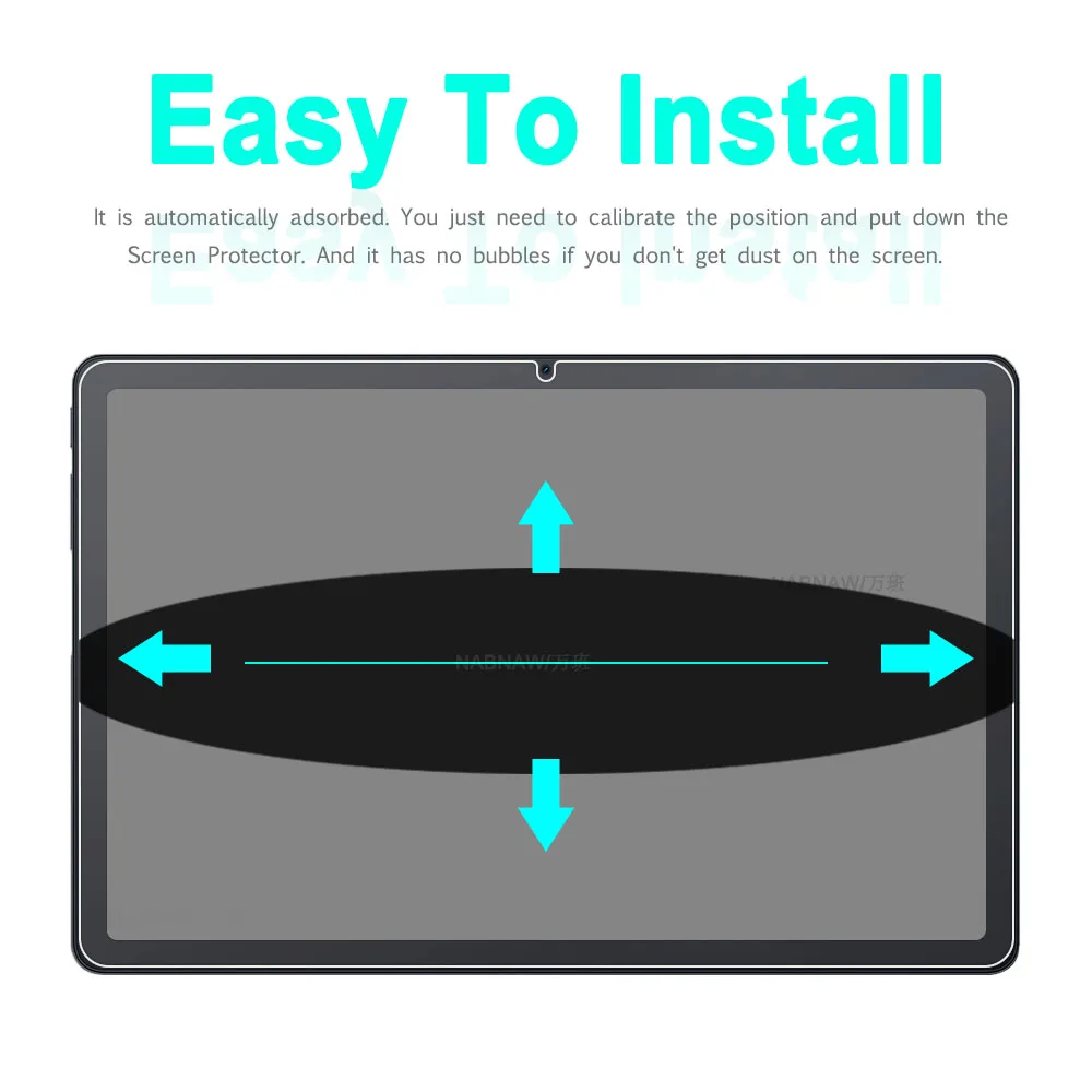 -- Rasgar y desechar la película de seguridad del protector de pantalla, calibrar la posición del protector de pantalla y la pantalla de la tableta y colocarlo lentamente.