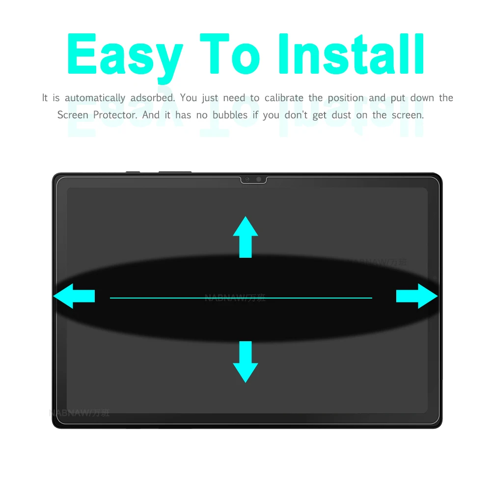 -- retire y deseche la película de seguridad del protector de pantalla, calibre la posición del protector de pantalla y la pantalla de la tableta y déjela lentamente.