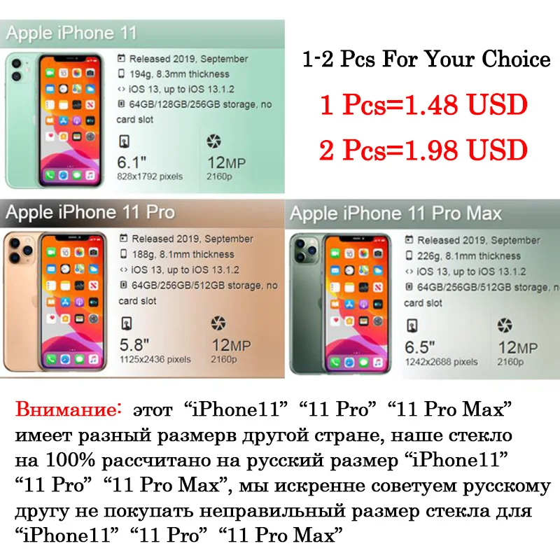 Comprar Protector de pantalla para iphone, armadura de vidrio iph para iphone 13, 11 pro max, 13pro, 11 pro, 1 a 2 unidades