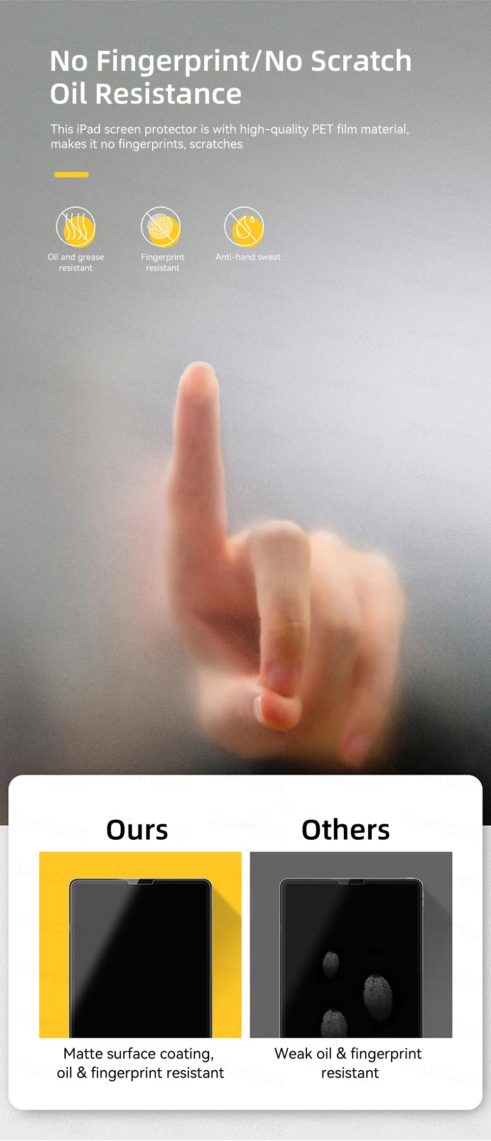 Este protector de pantalla para iPad está hecho de material de película PET de alta calidad, hace que no tenga huellas dactilares ni arañazos.