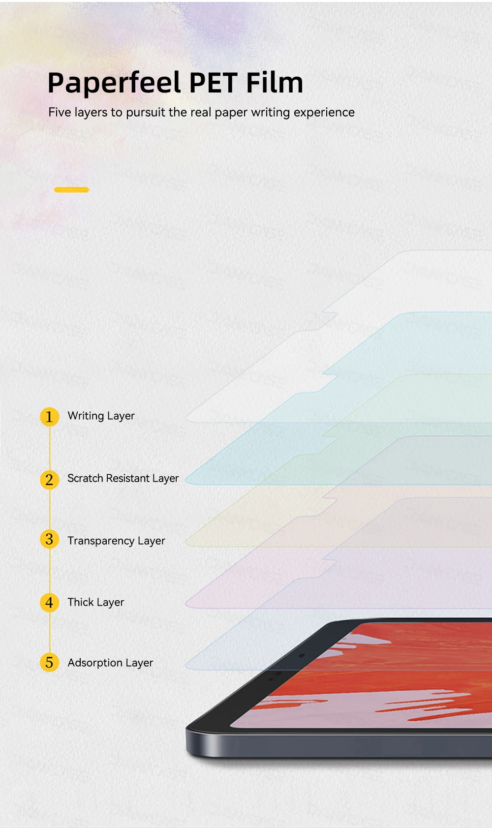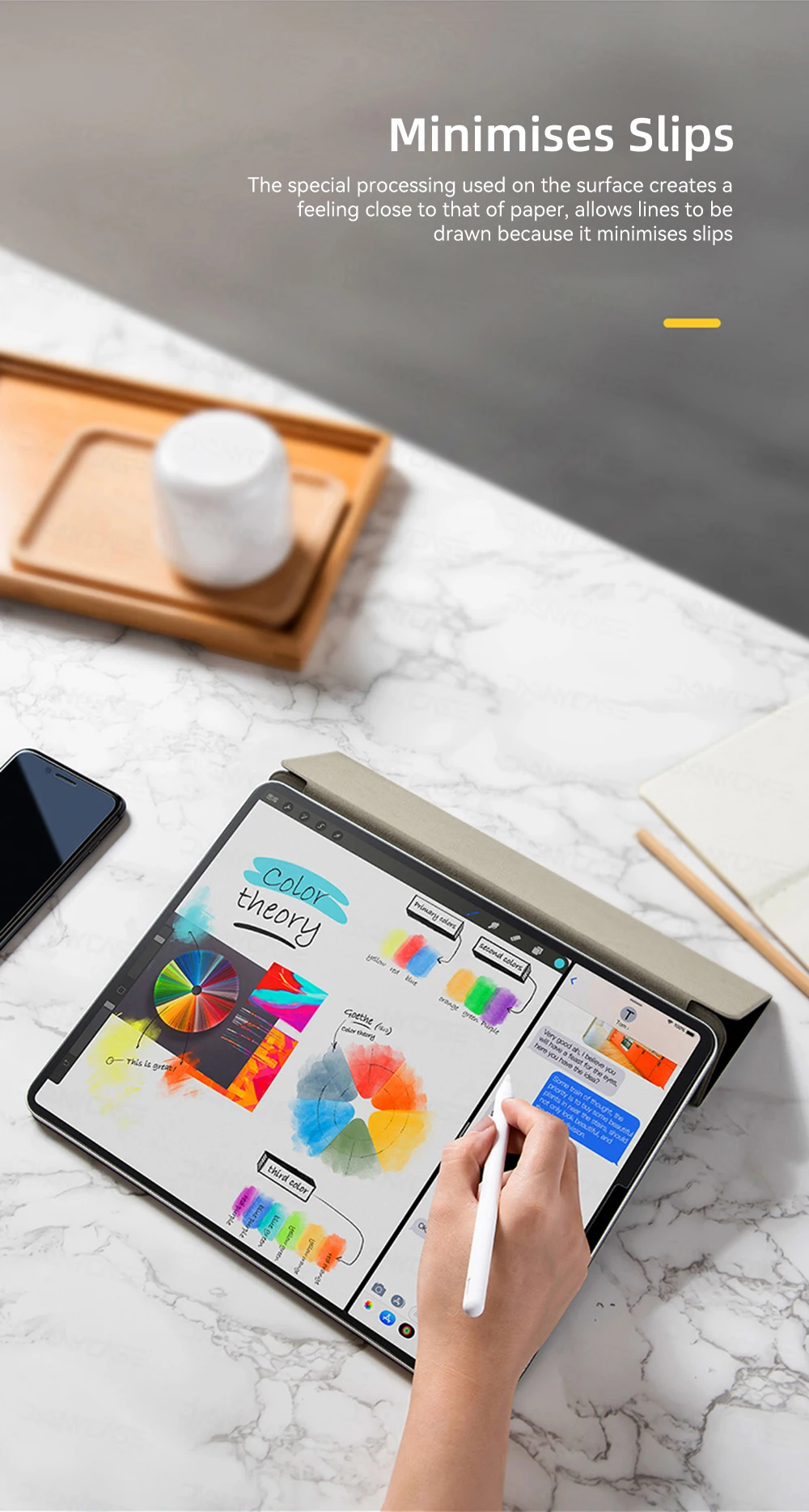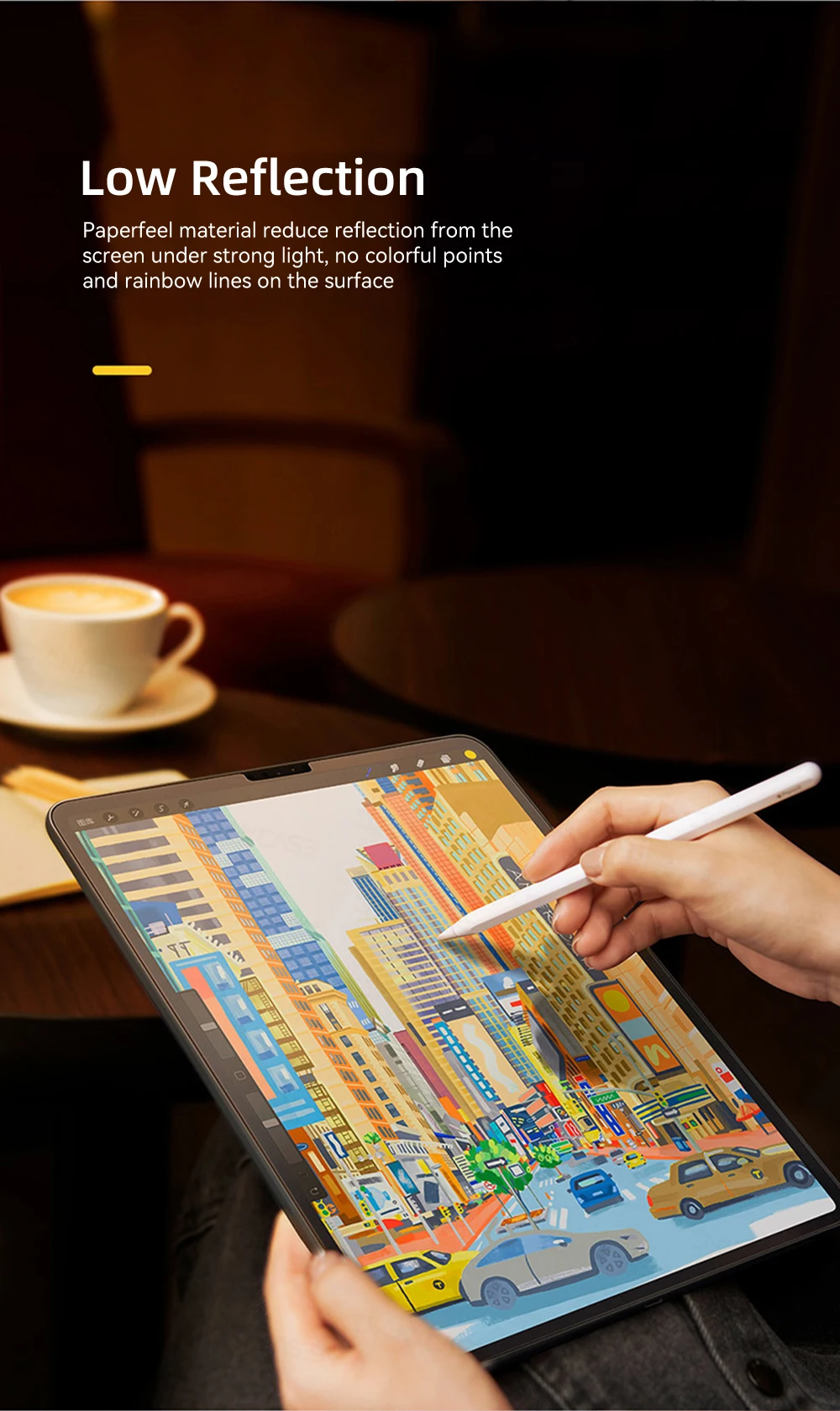 El material Paperfeel reduce el reflejo de la pantalla bajo una luz fuerte, sin puntos de colores y líneas de arco iris en la superficie
