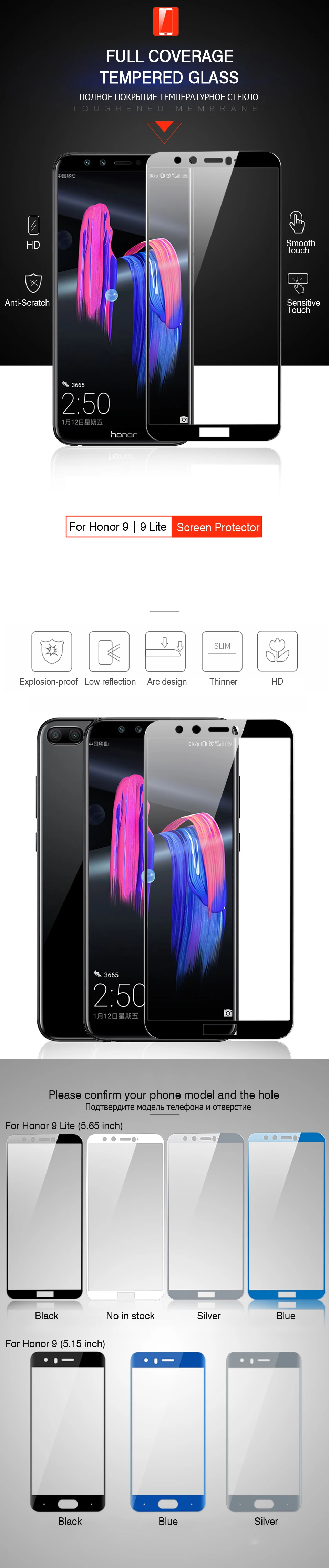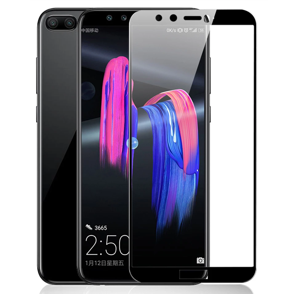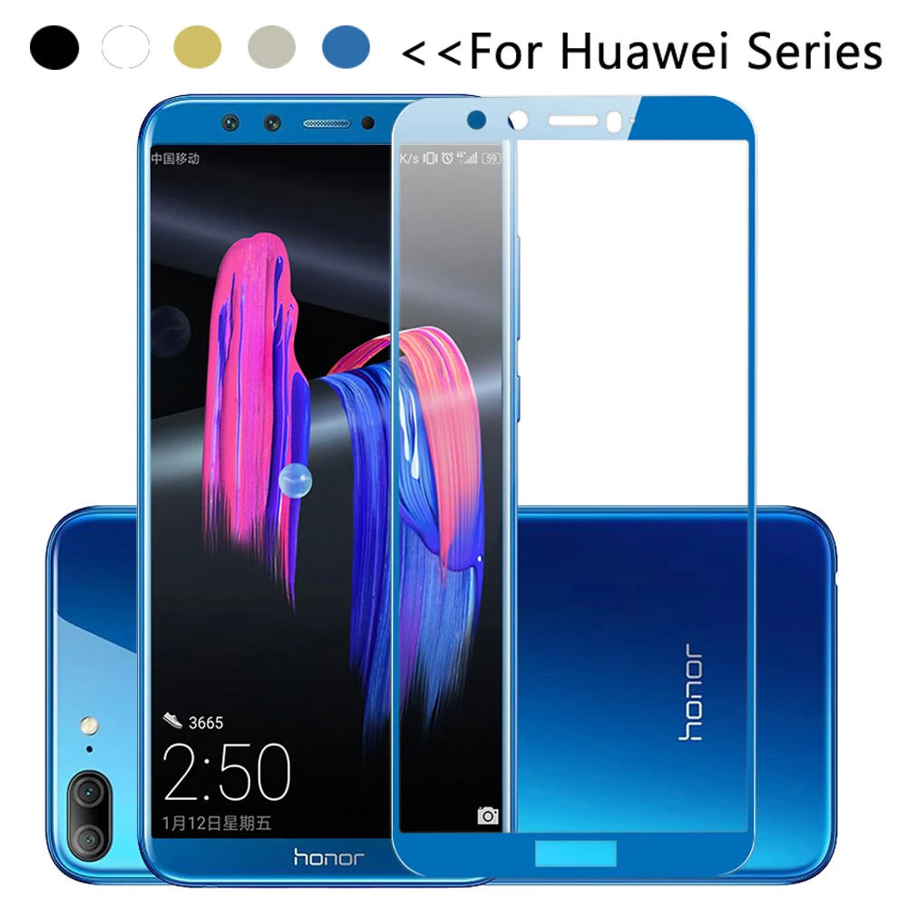 Comprar Protector de pantalla negro, azul y dorado para Honor 8 9 V8 V9 V10 7X 9X 9H, película protectora de cubierta completa de vidrio templado
