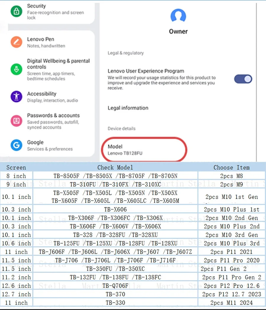 Antes de comprar el protector de pantalla, comprueba el modelo de tu tableta.