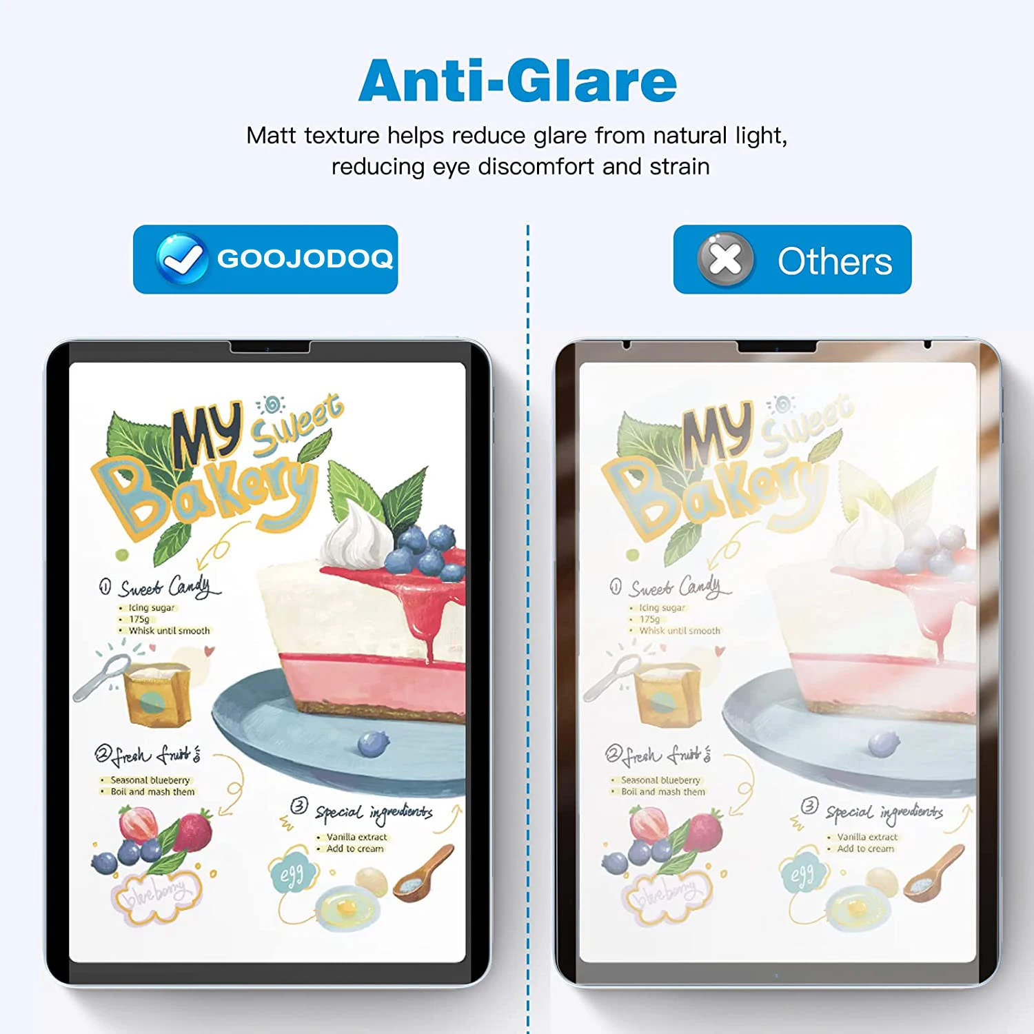 El protector de pantalla hecho de película PET japonesa de alta calidad, la superficie de dureza 3H hace que su tableta no tenga huellas ni arañazos. El protector de pantalla antideslumbrante no tiene puntos de colores ni líneas de arco iris en la superficie resiste eficazmente el deslumbramiento dañino y reduce el reflejo de la luz