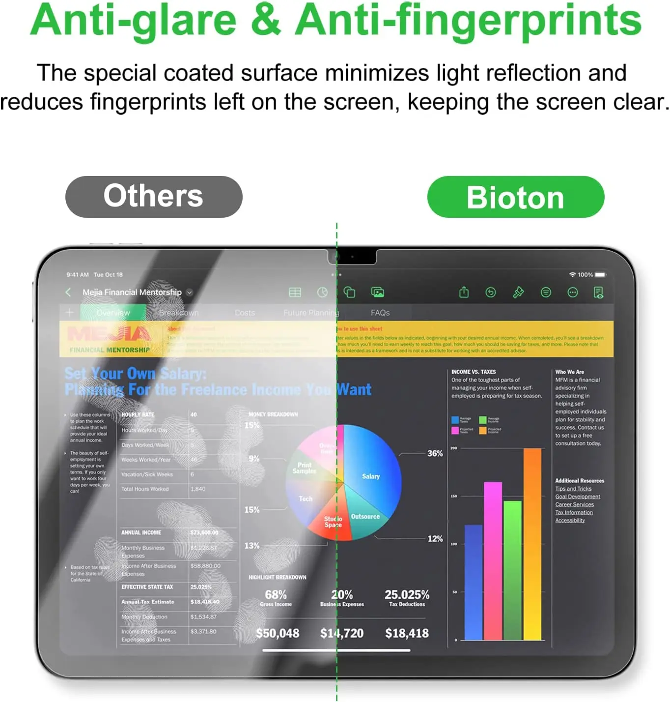 Este protector de pantalla con película PET japonesa de alta calidad, dureza de revestimiento de superficie mate de nivel 3H hace que tu tableta no tenga huellas dactilares, arañazos.