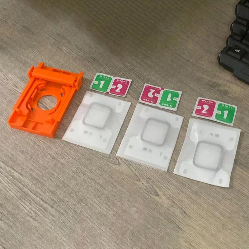 Kit de 3 piezas: 1 pieza de artefacto de instalación de contenedor libre de polvo - 3 piezas de película protectora - 3 piezas de algodón con alcohol