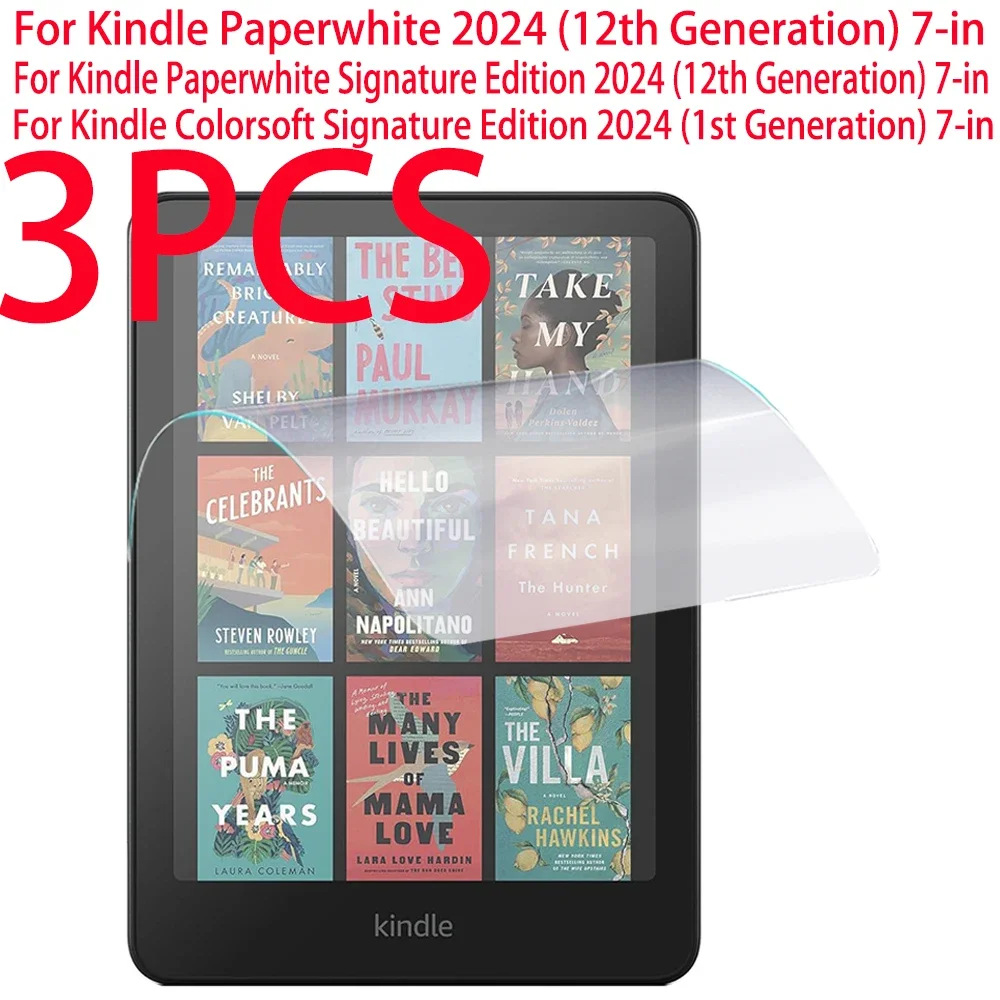 Protector de pantalla de película suave PET de 3 piezas para Kindle Paperwhite 2024 12.a generación 7 pulgadas para Kindle Paperwhite Signature Edition 2024 (12a generación) 7 pulgadas para Kindle Colorsoft Signature Edition 2024 película protectora